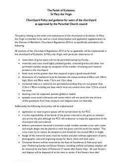 The Regulations are intended to encourage good practices in order to create and maintain a place of peace, dignity and respect for the departed. You can view the Blackburn Diocese Church Yard Regulations by selecting the image above on the right along with the local Church Yard Policy which is approved by the PCC on the left.